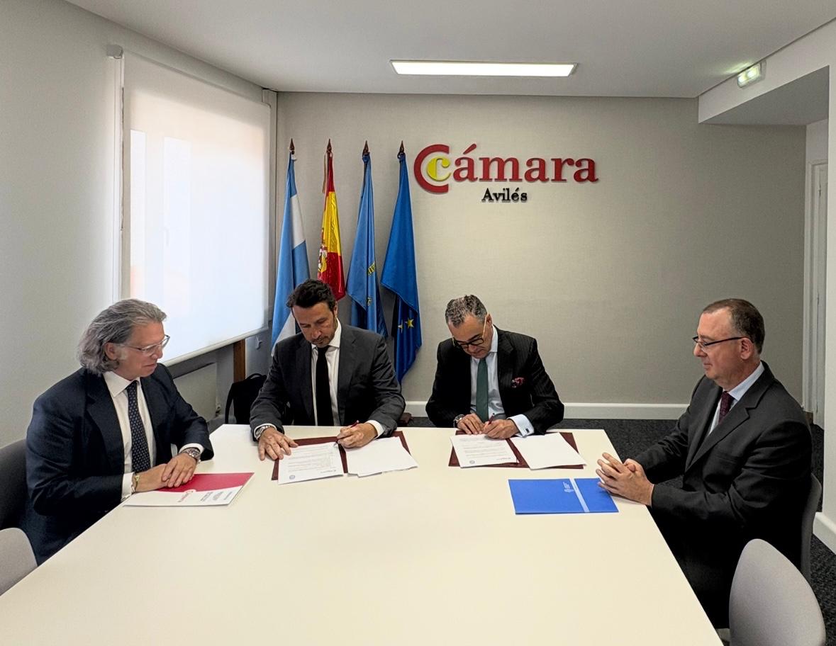La firma ha tenido lugar ayer en la sede cameral a cargo de Daniel González Menéndez, presidente de la Cámara de Comercio de Avilés, Alfredo Enrique Fernández Santos, vicepresidente 1ª de la Cámara de Comercio de Avilés, Antonio González – Busto Múgica, Decano del Ilustre Colegio de Abogados de Oviedo y Pedro Paulino Sánchez Sánchez, Secretario del Colegio de Abogados de Oviedo.