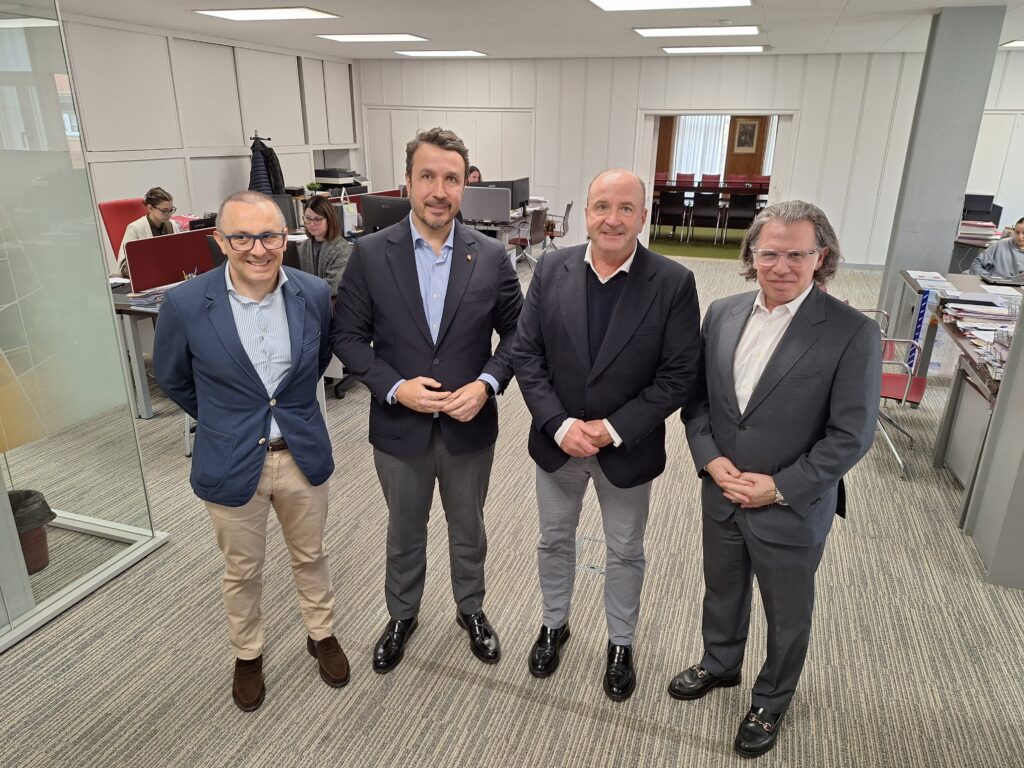 El presidente de la Cámara de Avilés, Daniel González, ha recibido en la sede cameral al presidente de OTEA, Javier Martínez, y al vicepresidente de la organización empresarial, Fernando Corral, para mantener una reunión de trabajo que ha contado con la participación del vicepresidente primero de la Cámara, Alfredo Fernández Santos. Durante el encuentro, ambas partes abordaron la situación actual del sector, de las inquietudes y los retos para los próximos meses.